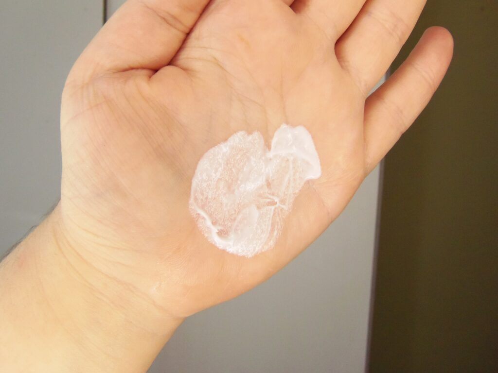 O mesmo possui textura branca, cremosa, leve e com os grânulos esfoliantes bem presentes e misturados ao creme, um pouco é suficiente para utilização e a esfoliação é de média a alta.