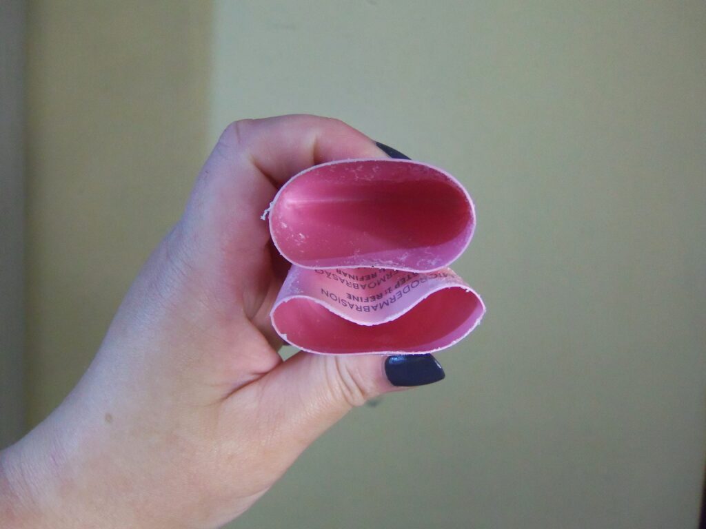 O mesmo pode ser manuseado do começo ao fim sem problemas e cortando ao meio ainda pega-se bastante esfoliante. Por causa do tamanho, segurança e praticidade, é ótimo para ser levado na bolsa, nécessaire ou mala.