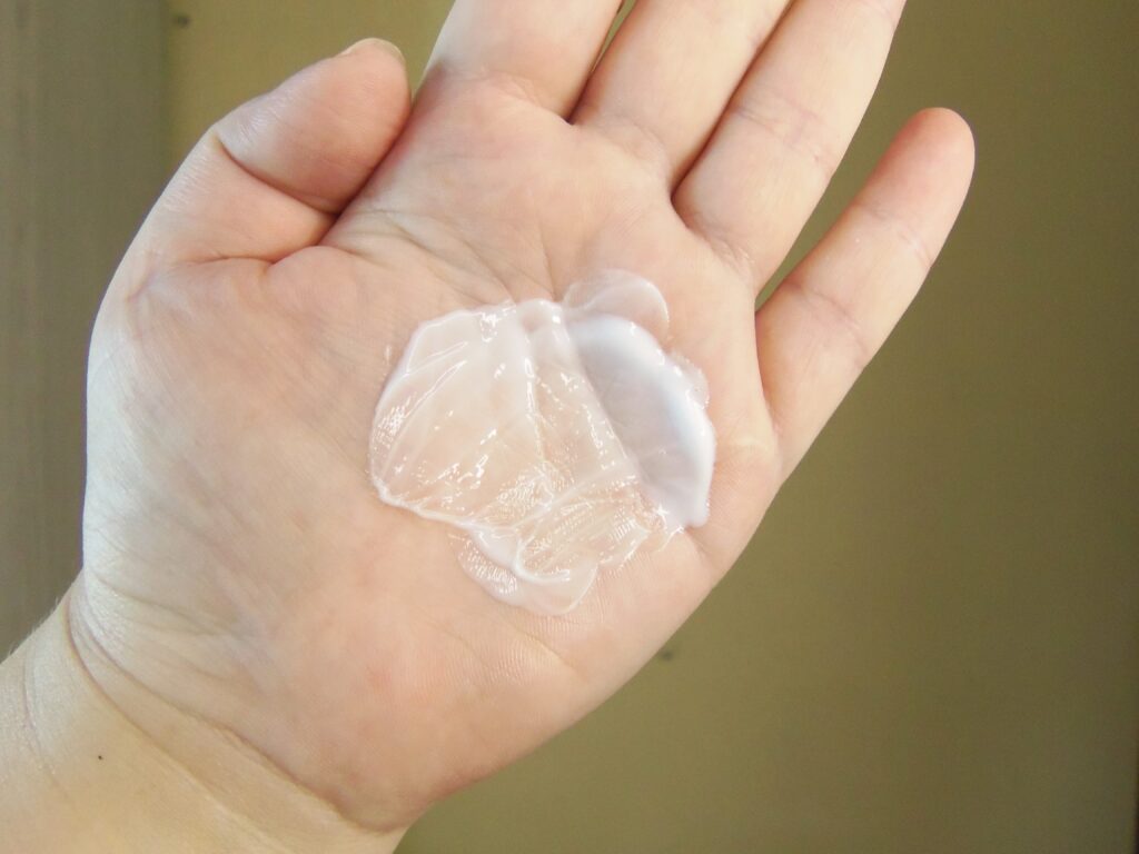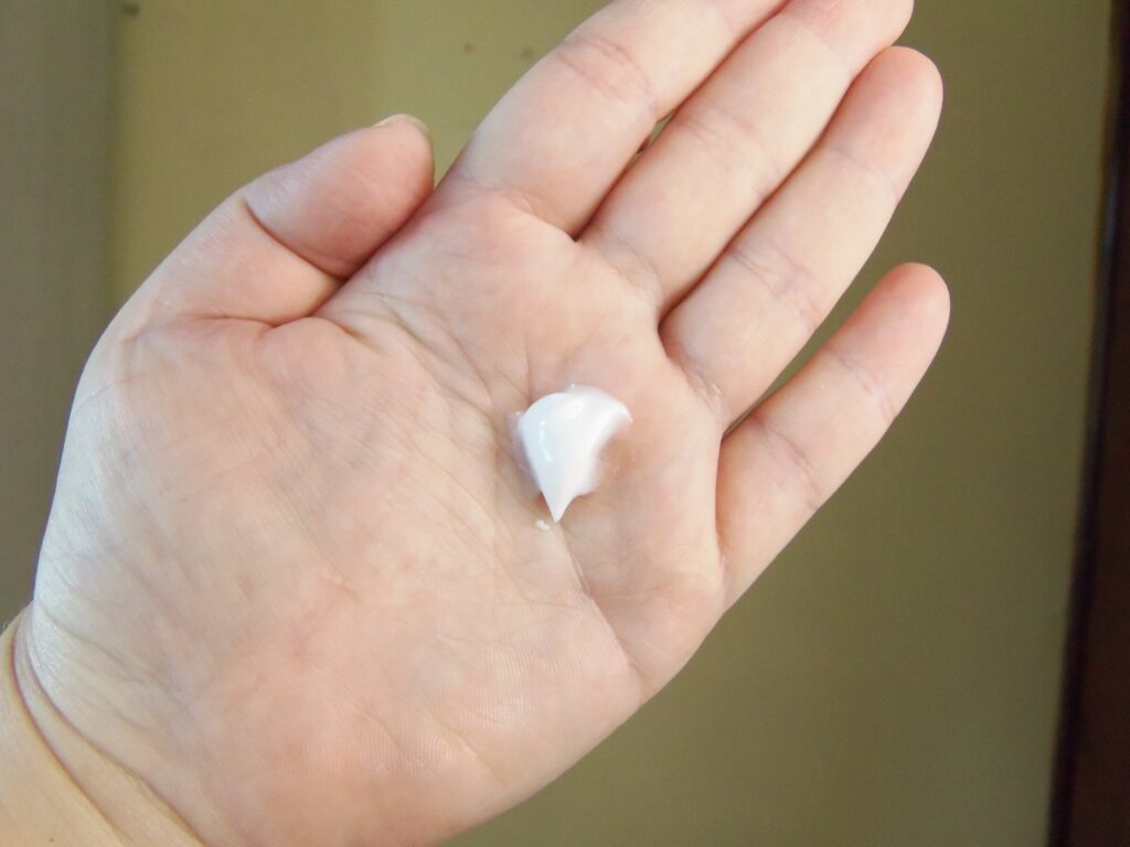 O mesmo possui textura leve, cremosa e branca, um pouco é suficiente para utilização e a absorção é rápida, independente da quantidade colocada.