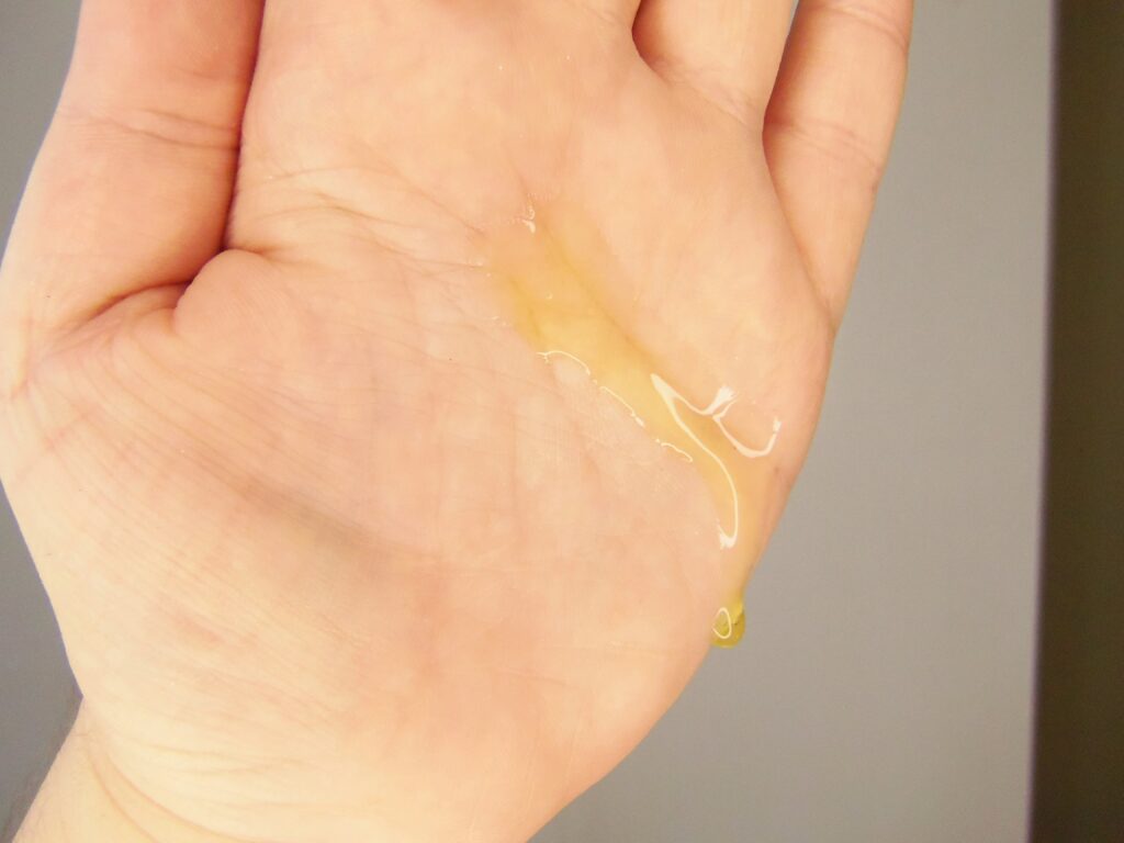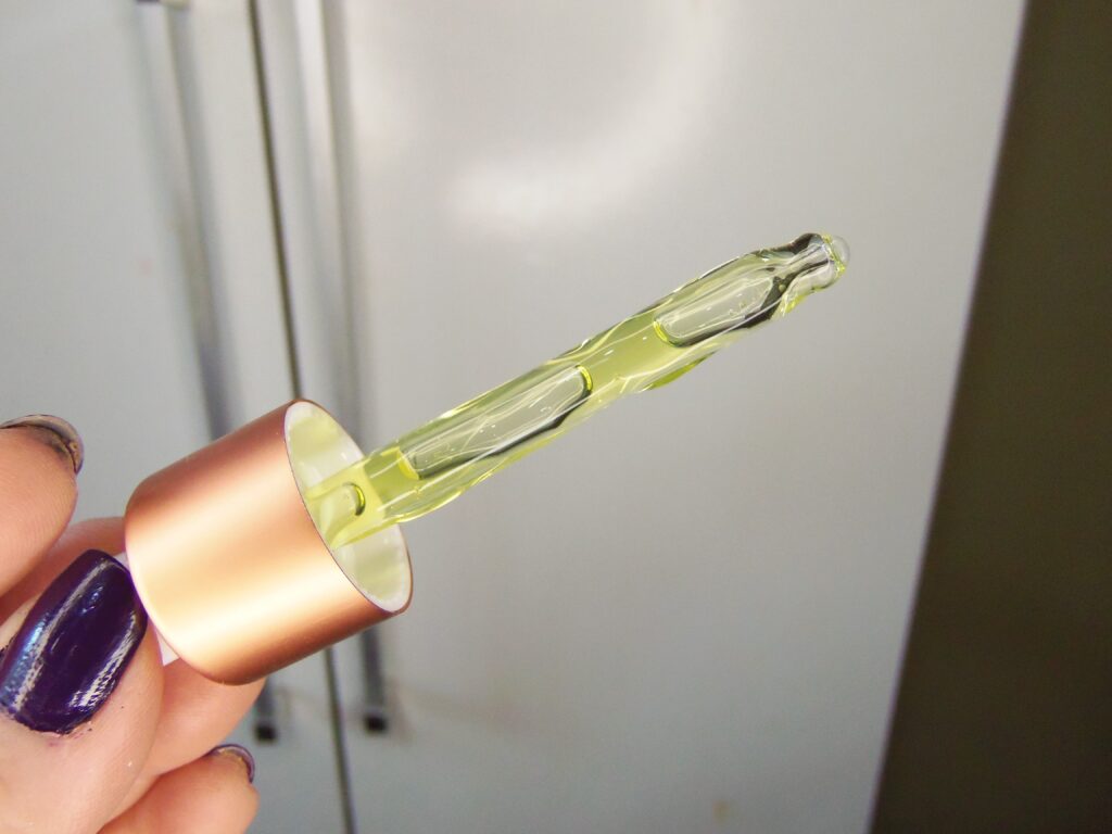 O sérum possui textura fluída, leve e amarelada que torna-se transparente em contato com a pele, um pouco é suficiente para utilização e a absorção é rápida, independente da quantidade colocada.