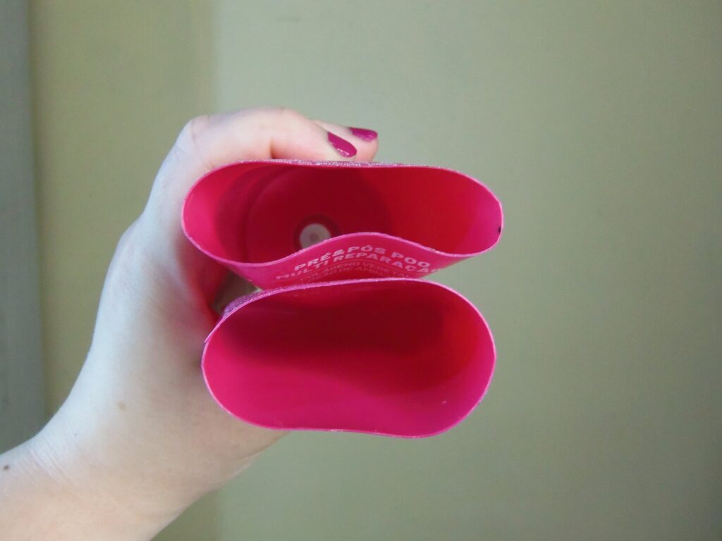 O mesmo pode ser utilizado do começo ao fim sem problemas e cortando o frasco pega-se os últimos resquícios. Mesmo sendo grandinho e larguinho, é prático e seguro de ser levado na bolsa, nécessaire e/ou mala.