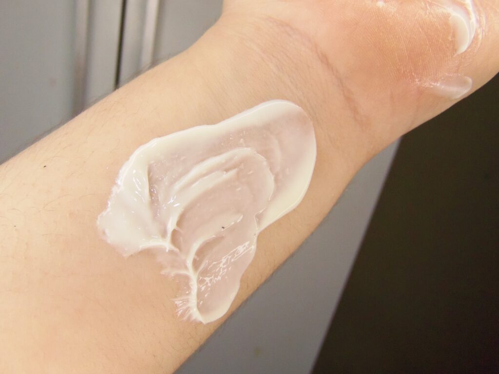 Textura leve, cremosa e na cor aveia que torna-se branca em contato com a pele. Fácil aplicação. Deixa o rosto hidratado, macio e bem cuidado. Rentabilidade baixa.