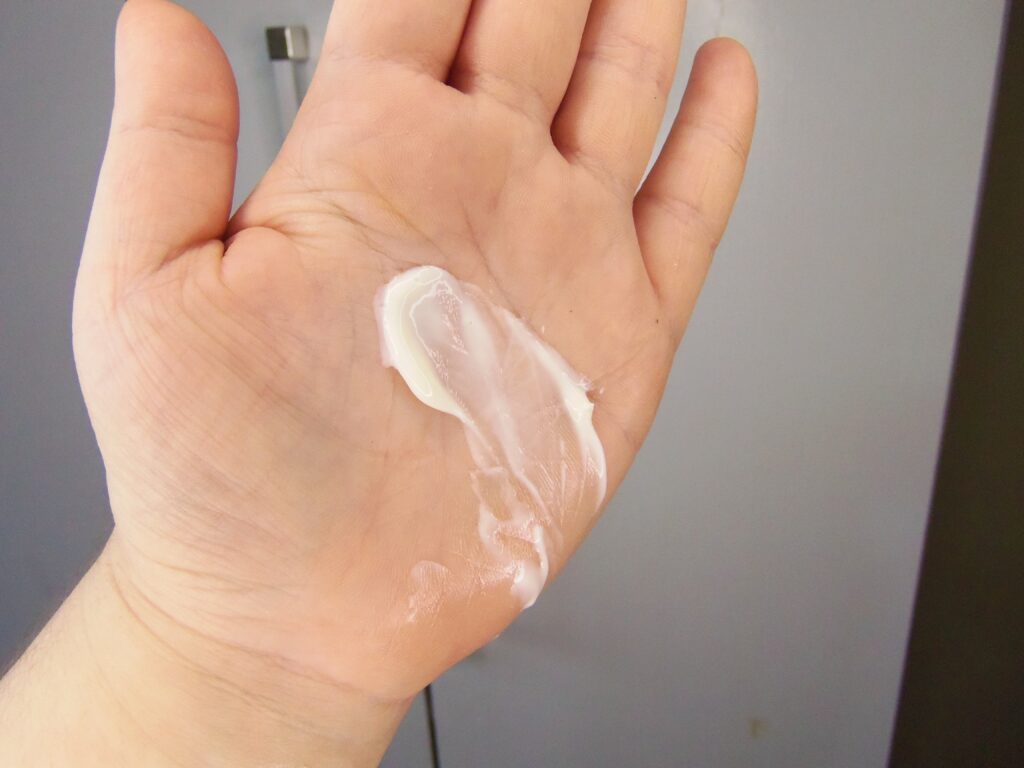 Ele pode ser manuseado e aplicado de duas maneiras: Uma é retirando com os dedos ou uma espátula, misturando um pouco ainda nas mãos e depois espalhando no rosto com movimentos circulares por algum tempo até a textura sumir totalmente. A outra é aplicando em algumas partes específicas da pele facial e depois repetir o processo de espalhar no rosto por algum tempo até o creme sumir totalmente.