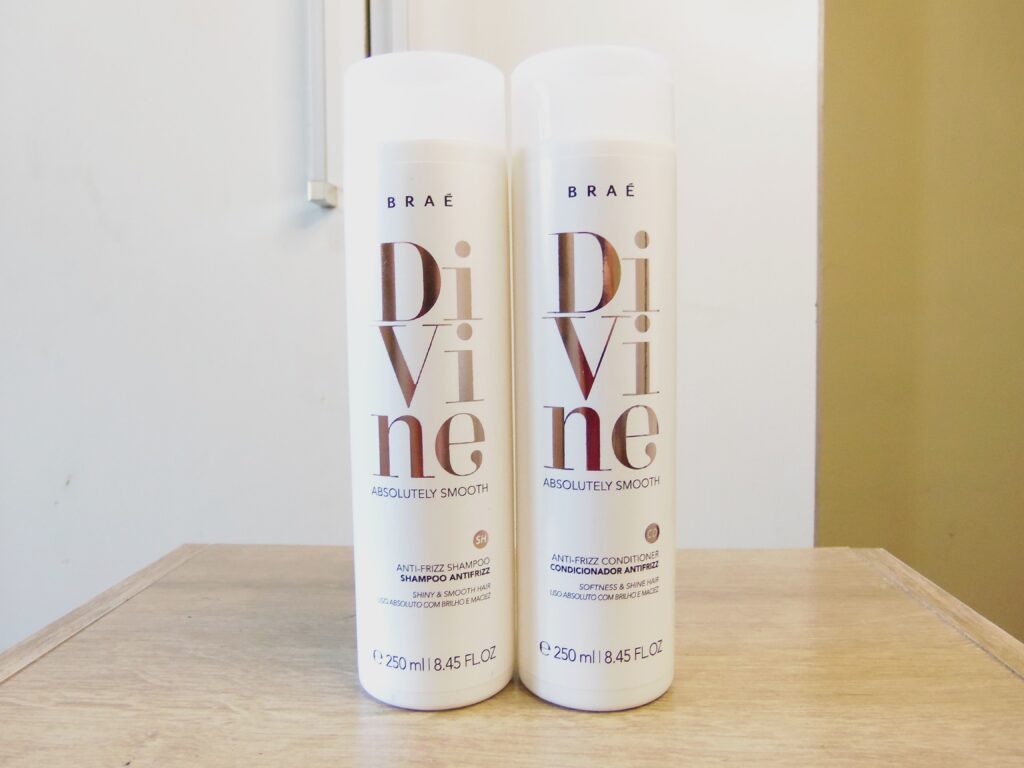 Depois da resenha da máscara capilar (Resenha aqui), enfim, chegou a vez do shampoo e condicionador da linha Divine da Braé que promete ação antifrizz e liso absoluto com brilho e maciez.