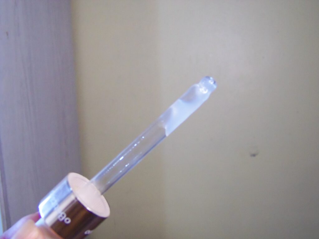 Como disse anteriormente, a textura é cremosa, consistente e como estamos falando de ácido hialurõnico puro e de alta potência, vai grudar mais do que dissolver e fluir. E isto vale tanto para a pele facial quanto para o grude no próprio conta-gotas.