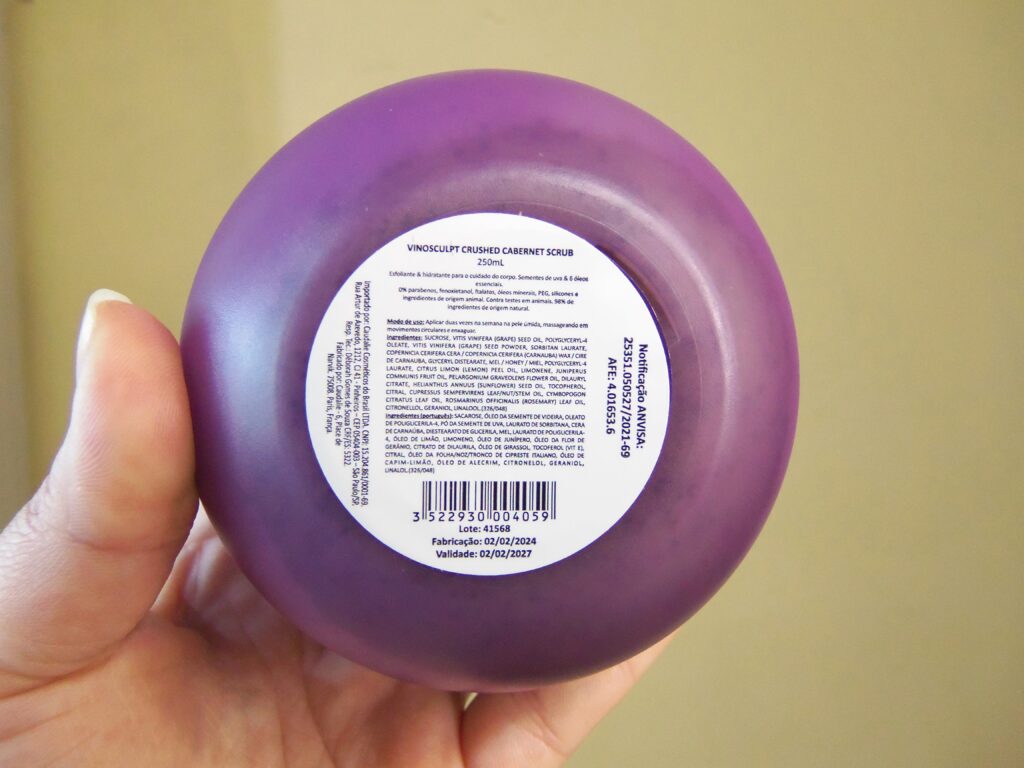 Em 2014 comprei e me apaixonei por um esfoliante corporal da Caudalíe (Post aqui). 1 1 anos depois e dando uma volta pelo site da marca encontrei um com uma textura mega parecida, esperei e comprei quando deu. Então a resenha de hoje é sobre o esfoliante corporal Vinosculpt Gommage Crushed Cabernet.