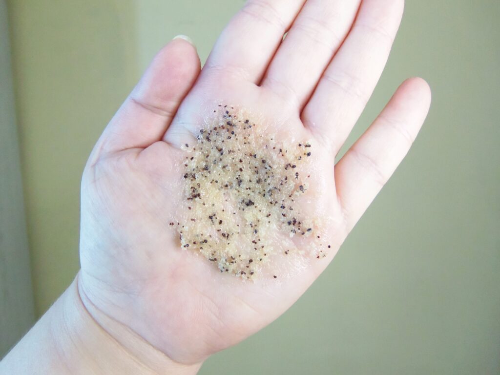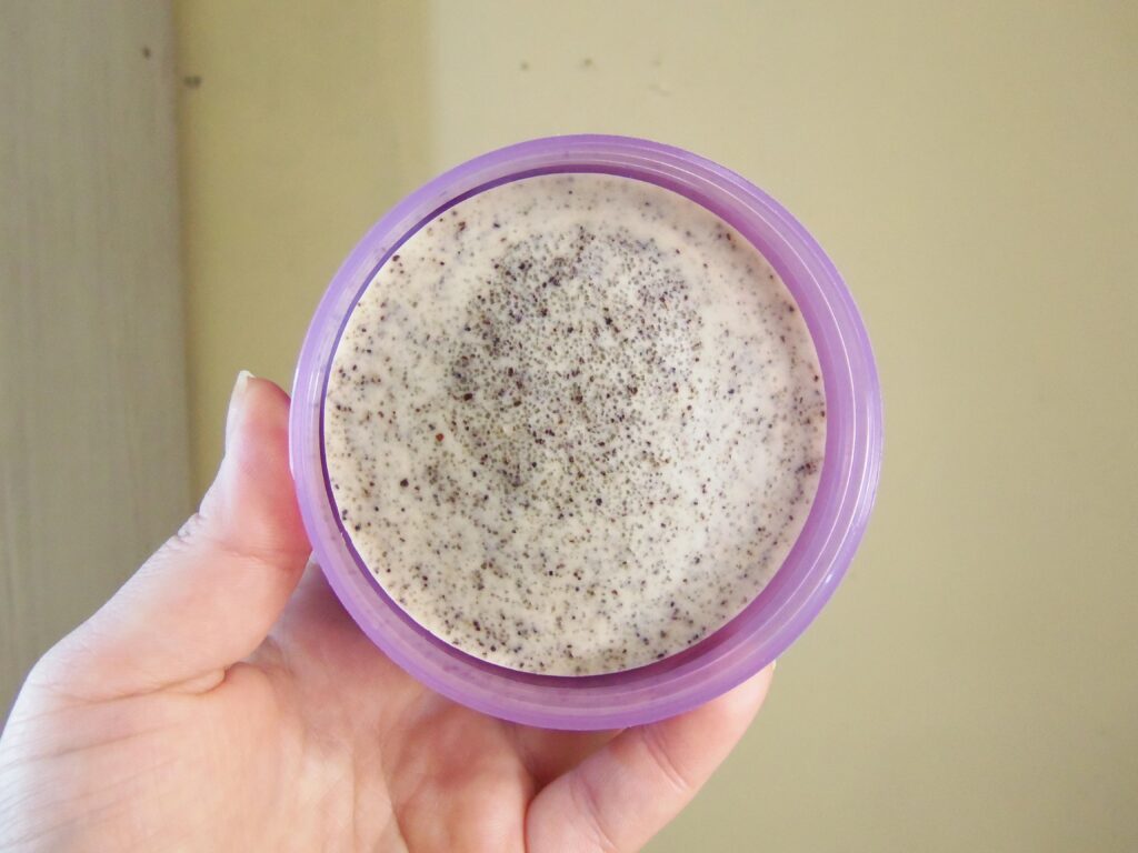 O mesmo possui textura cremosa, consistente, marrom e com os grânulos esfoliantes marrons escuros e claros e bem misturados ao creme. Um pouco em cada região é suficiente para utilização, é necessário uma espátula ou os dedos para retirar o produto e o nível de esfoliação é altíssimo.