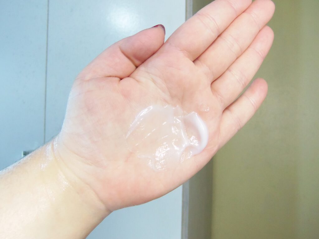 O mesmo possui textura em gel creme, leve e branco, um pouco é suficiente para utilização e a absorção é rápida, independente da quantidade colocada.