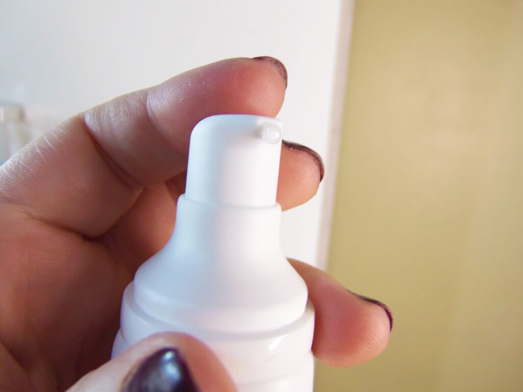 O produto pode ser aplicado de duas maneiras. Uma é dando algumas pumpadas nas mãos e espalhando no rosto com movimentos circulares por algum tempo até a textura absorver totalmente e a outra é escolhendo algumas partes do rosto, aplicando e também espalhando com movimentos circulares por algum tempo. Meu modo de uso em 99% das vezes foram dando algumas pumpadas nas mãos e espalhando no rosto. Aquele 1% foi testando diretamente no rosto, só que logo já deu ruim porque a textura mais grudava na saída do produto do que ia para a minha pele facial.
