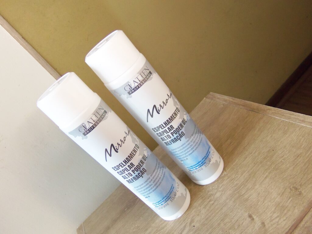 Shampoo e Condicionador Mirror / Glatten Professional / 300 ml cada / Shampoo: R$ 59,90 – Condicionador: R$ 59,90 / ☆☆☆☆