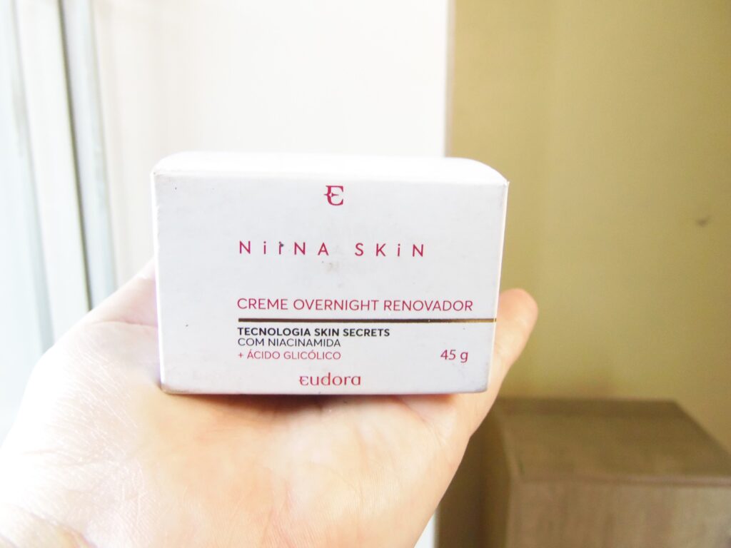 Daí resolvi me aventurar por mais alguns produtos da parceria da Niina Secrets com a Eudora. E a resenha do primeiro foi o que mais gostei e chamou a minha atenção: creme facial overnight renovador.
