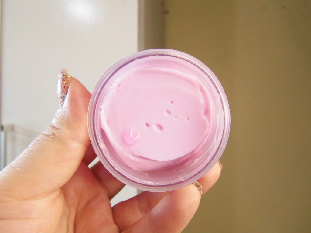 O mesmo possui textura cremosa, consistente e aroesada, um pouco é suficiente para utilização, a absorção depende da quantidade colocada e é necessário retirar a textura com os dedos ou uma espátula.