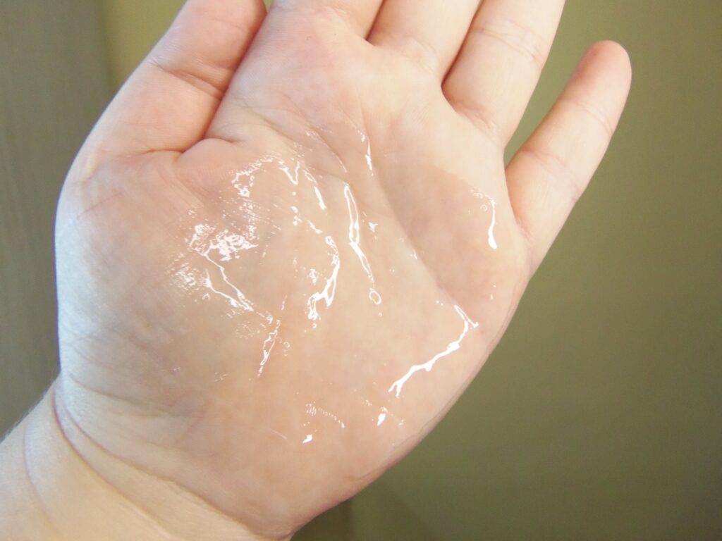 O mesmo possui textura indo para o gel, leve e transparente e um pouco é suficiente para utilização.