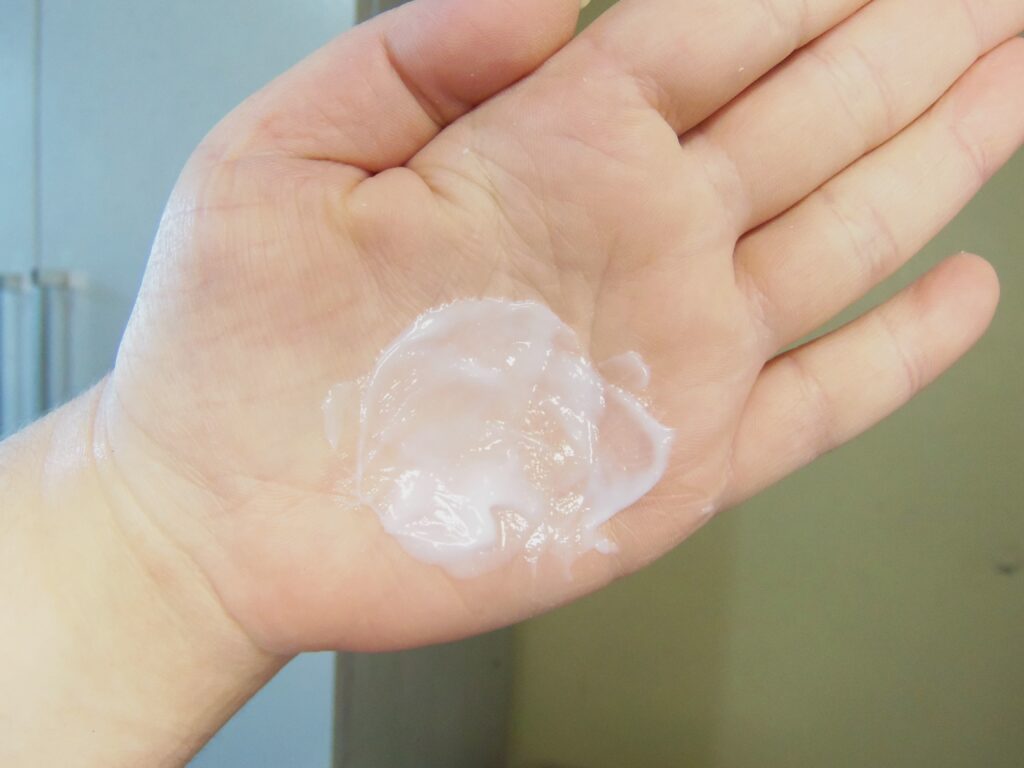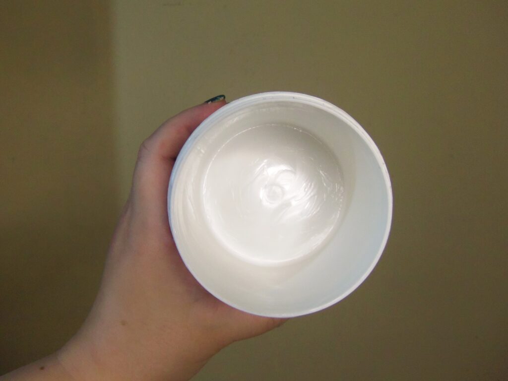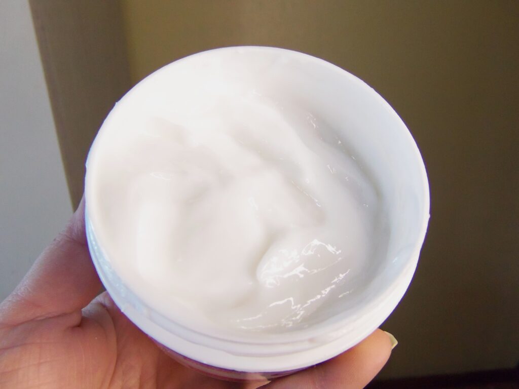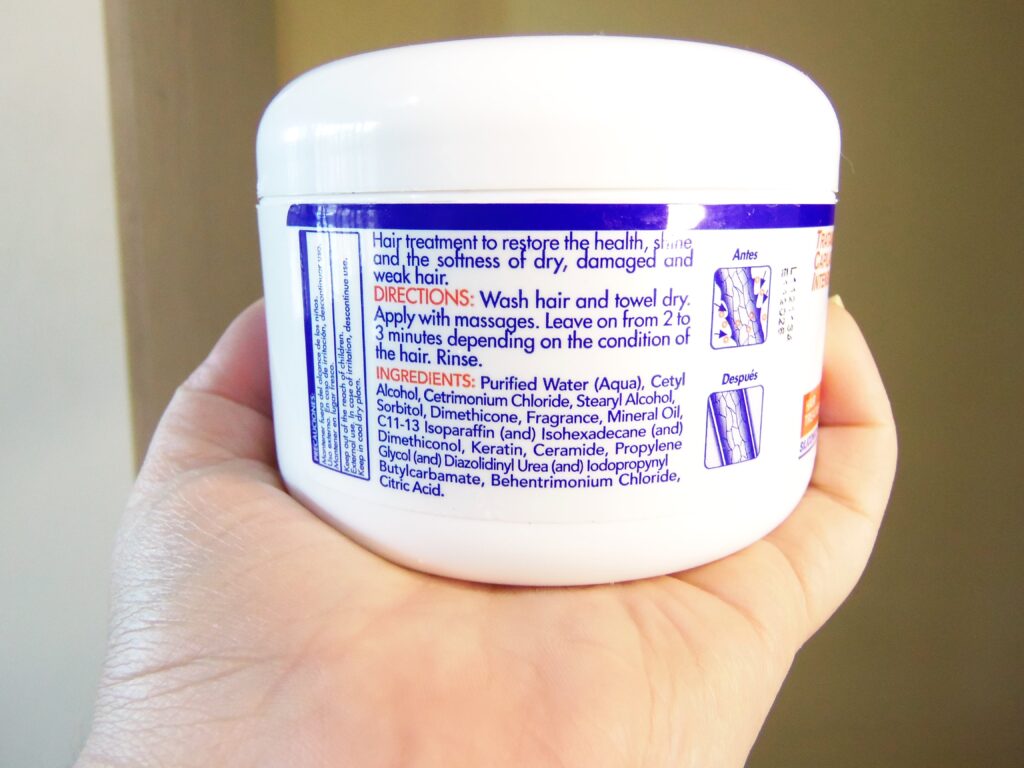 O mesmo possui textura branca, leve e cremosa, um pouco é suficiente para utilização, se enquadra na etapa de hidratação / reconstrução do cronograma capilar e é necessário os dedos ou uma espátula para retirar o produto.