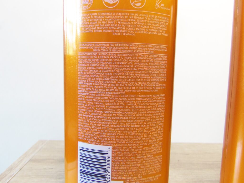 Shampoo: O shampoo Óleo de Moringa Dourada da Herbal Essences é especialmente inspirado na natureza para hidratar o cabelo combatendo o ressecamento, proporcionando suavidade e tornando-o mais macio e revitalizado. Sua fórmula tem botânicos reais certificados pelo Kew, uma autoridade mundial em plantas com mais de 260 anos de experiência.