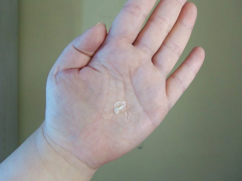 O mesmo possui textura perolada indo para o transparente, leve e cremosa indo para o gel, um pouco é suficiente para utilização e o tempo de absorção depende da quantidade colocada.