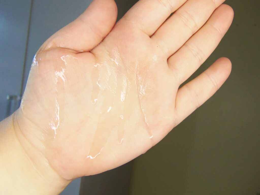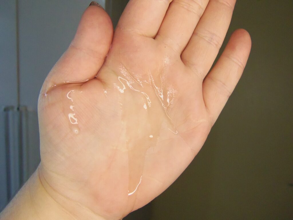 O mesmo tem textura fluída, leve e um amarelada que torna-se transparente em contato com a pele, um pouco em cada área do corpo é suficiente para utilização e pode ser aplicado tanto no banho quanto fora.
