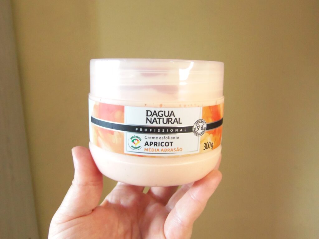 A muito, muito, muito, muito, muito tempo mesmo que tinha curiosidade em usar o creme esfoliante de apricot da D´Água Natural. Fui deixando para lá porque é uma marca mais voltada para esteticistas, até que resolvi comprar o frasco de 300 g de média abrasão na loja online Nova Era Cosméticos.