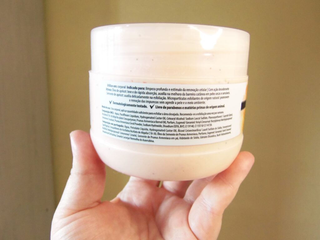 Compraria novamente? Este não porque, realmente não esperava que a média abrasão seria tão leve. E sinceramente acho que, se é vendido para consumidor comum, alguma variação tem que ser pensada para este nicho e não com cabeça estética também. Terminei bastante curiosa para experimentar a forte abrasão, no pote maior ainda para ver qual é e daí sim vou entender o modus “desenvolvido para esteticistas” e também torcendo para a marca criar o extra abrasão em frascos de 650 g, com bastante textura no pote e pensando tanto no consumidor comum quanto nos esteticistas.