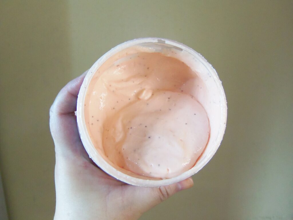 Inclusive, a textura como um todo é beeeeem cremosa e até um pouco diluída. Para quem está acostumadx com texturas firmes e consistentes dos esfoliantes corporais homecare e mais voltados para o público de modo geral vai se assustar certamente.