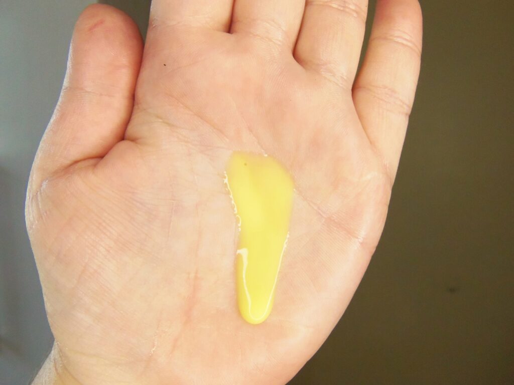 Textura amarelada, leve e um fluído indo para o cremoso. Fácil aplicação. Deixa o rosto bem cuidado, macio, hidratado e luminoso. Rentabilidade baixa indo para a média.