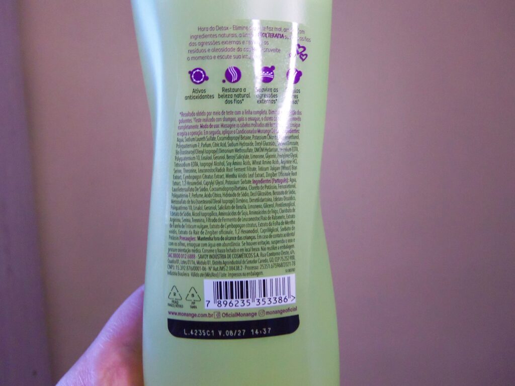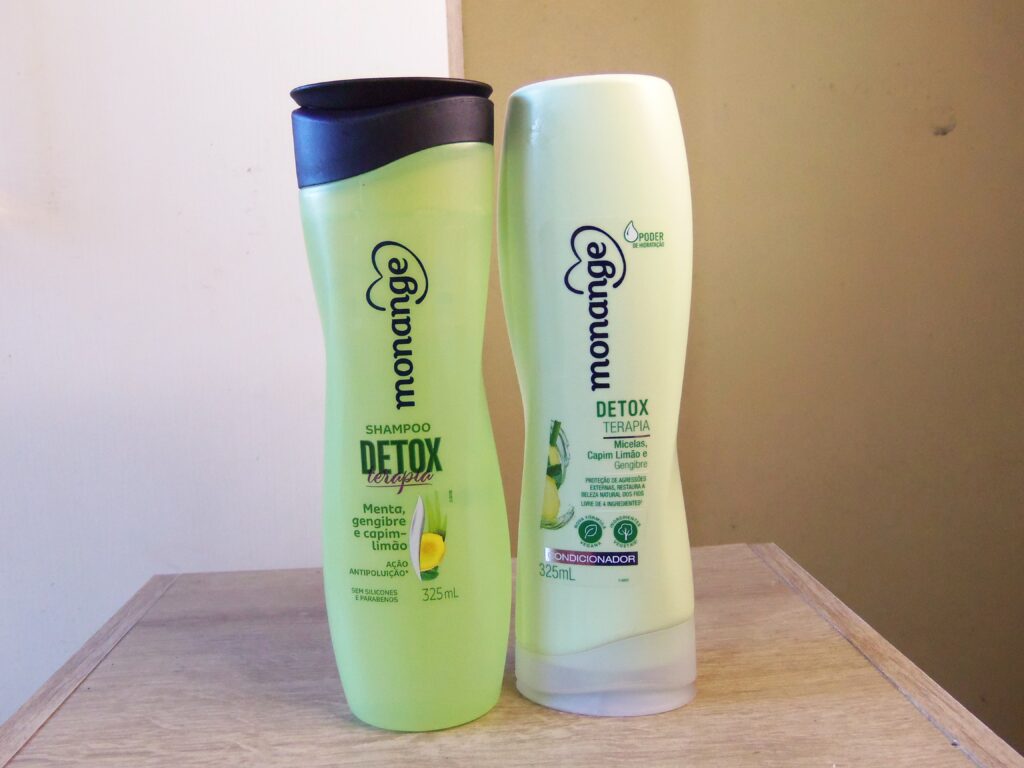 Eu estava precisando de um shampoo e condicionador detox / antiresíduos / purificante e a Monange remodelou todos os seus produtos capilares. Juntou os dois e comprei a dupla da variação Detox Terapia que possui menta, gengibre, micelas e capim-limão nos seus ingredientes.