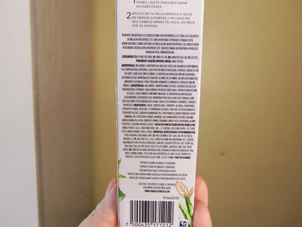 As informações gerais de uso e ingredientes são facilmente encontradas e lidas na caixa de papelão que vem protegendo o frasco, possui as mesmas tonalidades do item e só adicionando uma cor marrom terroso e mais desenhos das plantas dos principais ingredientes. Na embalagem como um todo só constam descrições gerais de uso e advertências em espanhol. Já o site oficial da marca, no dia de programar a resenha, estava fora do ar. No dia que fiz a resenha propriamente dita, o mesmo estava funcionando normalmente e o produto estava presente no portfólio da marca sem problemas nenhum.