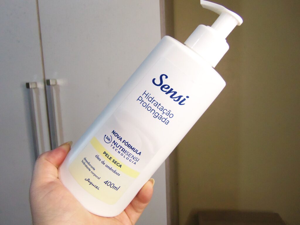 E daí resolvi me jogar no hidratante desodorante corporal da variação Hidratação Prolongada da linha Sensi da Jequiti.