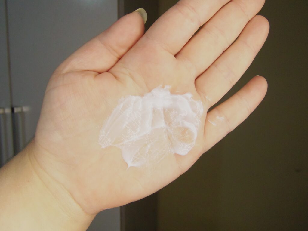 Textura branca, cremosa e um consistente que torna-se leve em contato com a pele. Fácil aplicação. Deixa o rosto hidratado, macio e bem-cuidado. Rentabilidade baixa.