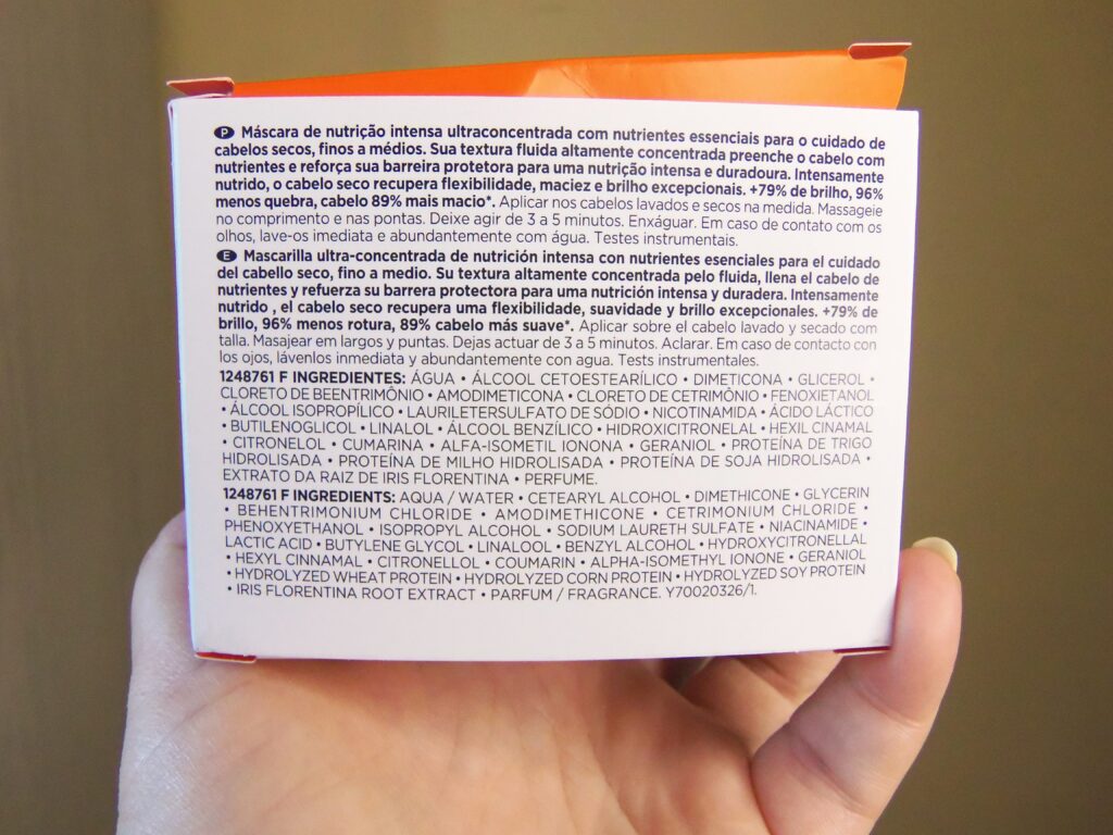 Segundo a marca, a mesma é indicada para cabelos ressecados, secos, finos a médios e oferece uma nutrição profunda ultraconcentrada.