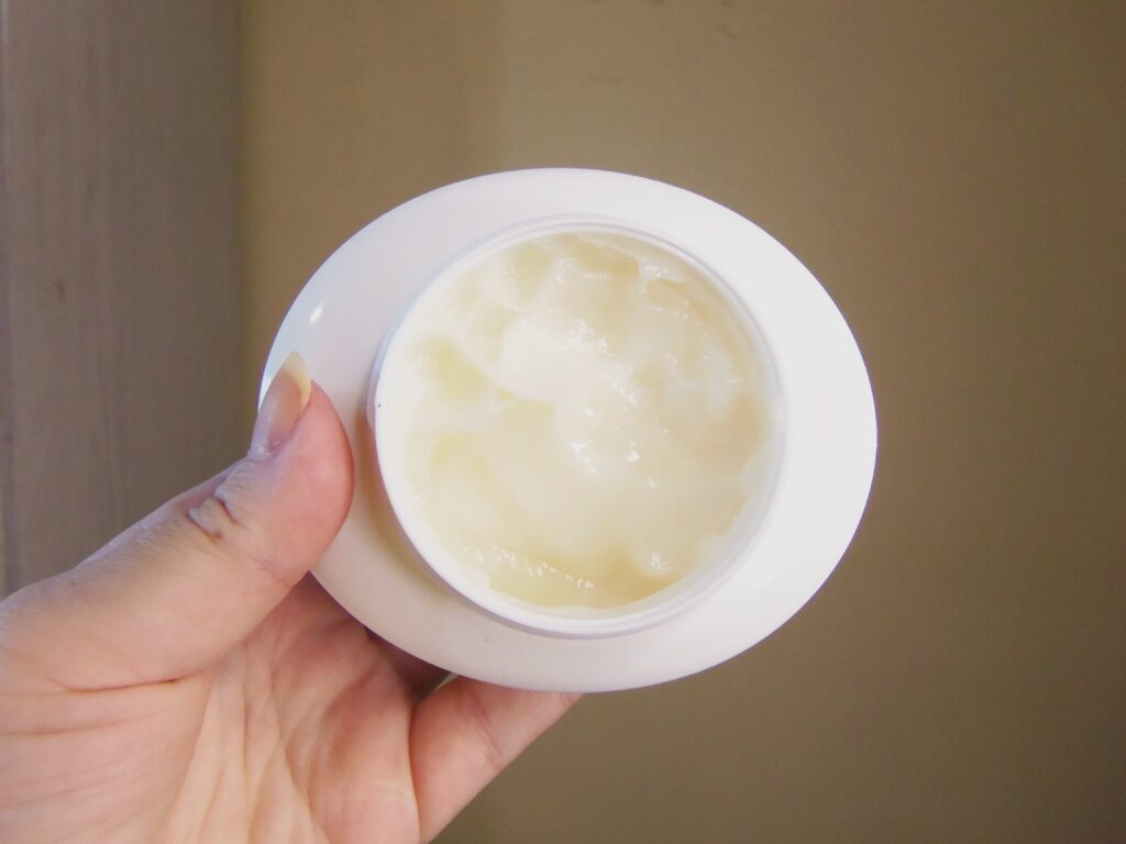 O item tem textura branca, cremosa e um consistente que torna-se leve em contato com os fios, um pouco é suficiente para utilização, se enquadra na etapa de nutrição do cronograma / planejamento capilar e é necessário uma espátula ou os dedos para retirar o produto do frasco.