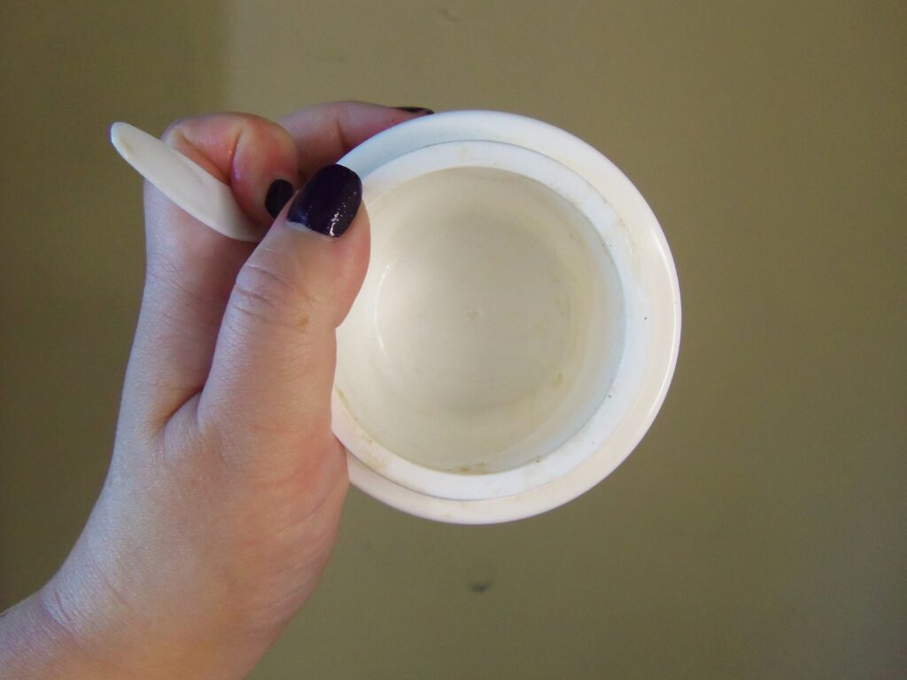 O mesmo pode ser manuseado do começo ao fim sem problemas e o pote é reutilizável com qualquer outro item da sua preferência depois. Mesmo sendo grande e arredondado, é prático e seguro de ser levado na bolsa e/ou mala.